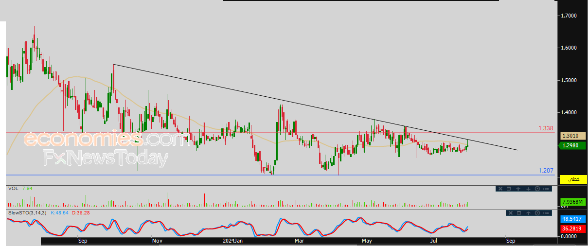 لهذا تشير توقعاتنا إلى ترجيح سيناريو عودة انخفاض سعر السهم خلال تداولاته القادمة، طيلة ثبات المقاومة 1.338، ليستهدف مستوى الدعم المحوري 1.207.