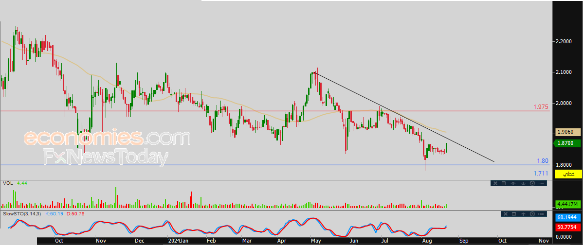 لهذا نحن نرجح عودة هبوط سعر السهم خلال تداولاته القادمة، ليستهدف من جديد مستوى الدعم المحوري 1.80 استعداداً لكسره.