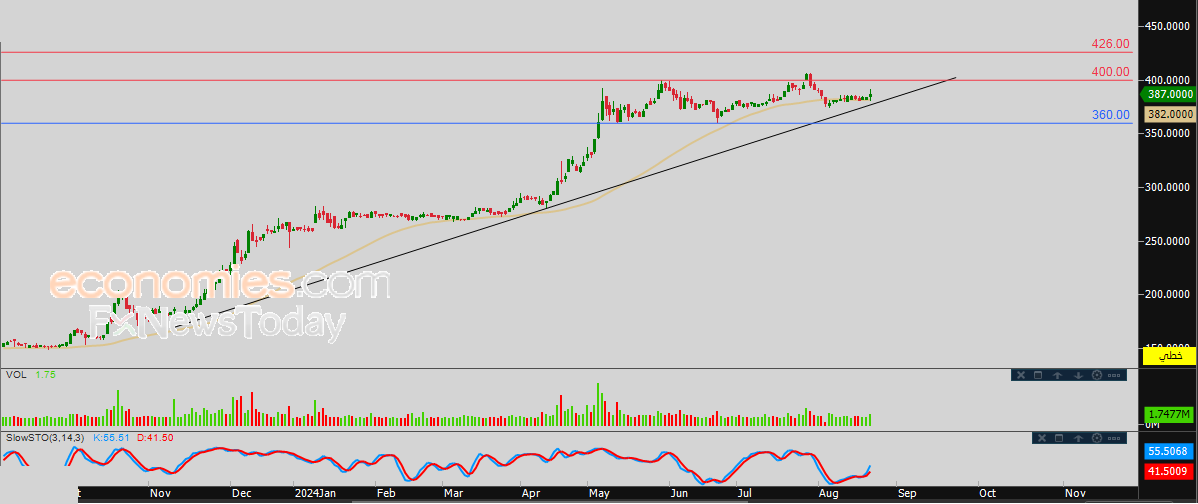 لذلك نحن نتوقع المزيد من الصعود لسعر السهم خلال تداولاته القادمة، خاصة في حالة اختراقه لمستوى المقاومة 400.00، ليستهدف بعدها أولى مستويات المقاومة عند سعر 426.00 دينار.