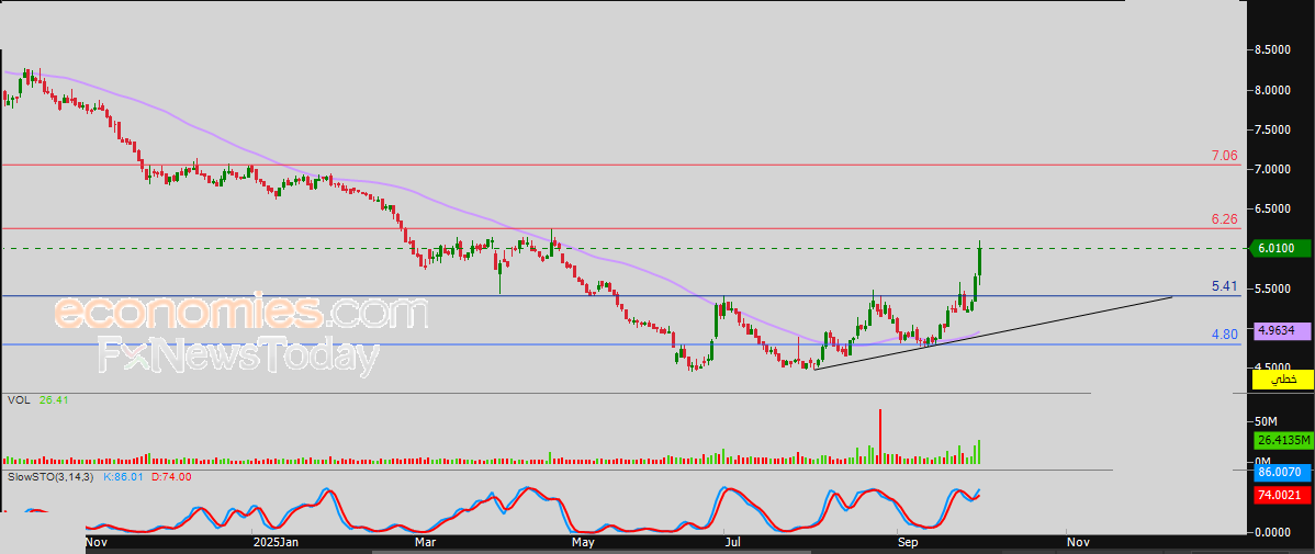 لذلك فتوقعاتنا تشير إلى صعود سعر السهم خلال تداولاته القادمة، خاصة في حالة اختراقه للمقاومة القريبة 6.26 ريال، تلك المقاومة التي كانت مستهدفاً سعرياً لنا بتحليلاتنا السابقة، ليستهدف بعدها مستوى المقاومة التالي عند سعر 7.06 ريال.