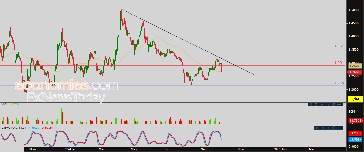 لهذا تشير توقعاتنا إلى المزيد من الهبوط لسعر السهم خلال تداولاته القادمة، طيلة استقراره دون مستوى 1.291، ليستهدف مستوى الدعم المحوري 1.215.