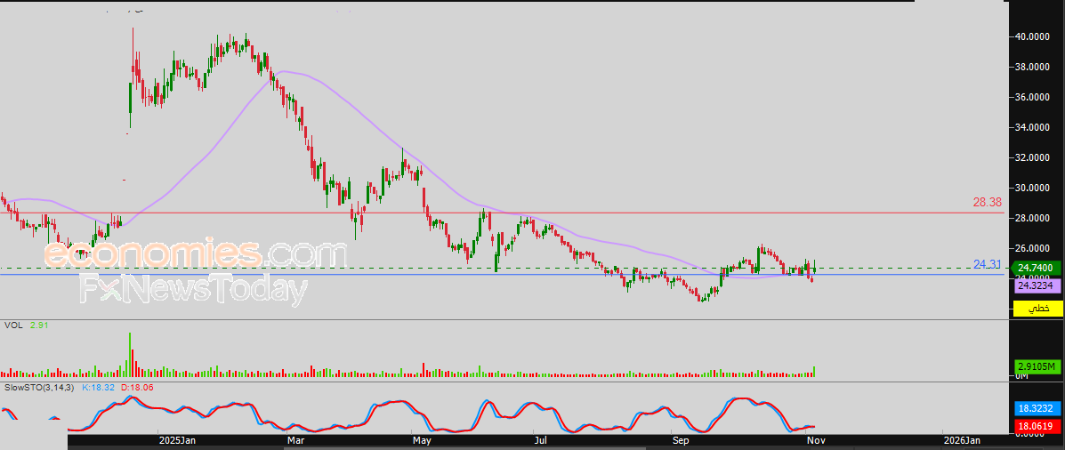 لذلك فتوقعاتنا تشير إلى صعود سعر السهم خلال تداولاته القادمة، بشرط ثبات مستوى الدعم الحالي 24.31 ريال، ليستهدف مستوى المقاومة 28.38 ريال.