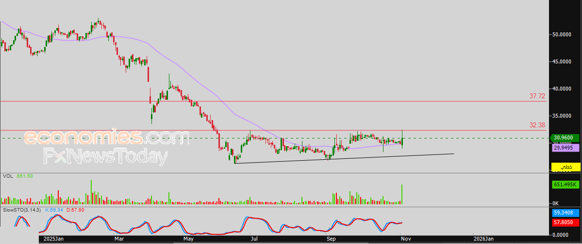 لهذا تشير توقعاتنا إلى صعود سعر السهم خلال تداولاته القادمة، خاصة في حالة اختراقه للمقاومة المحورية 32.38 ريال، ليستهدف بعدها مقاومته التالية عند سعر 37.72 ريال.
