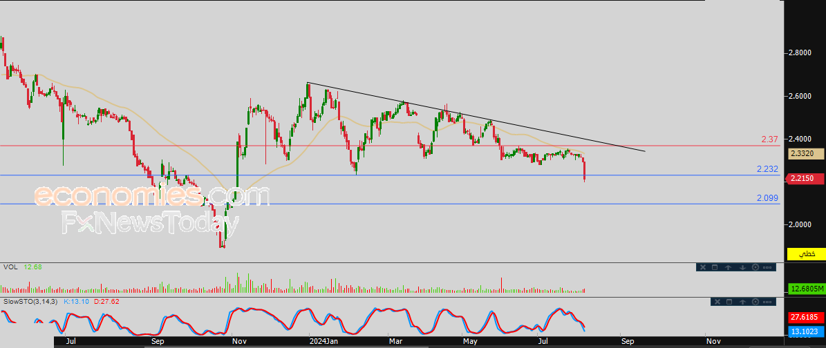 لهذا تشير توقعاتنا إلى المزيد من الهبوط لسعر السهم خلال تداولاته القادمة، خاصة في حالة تأكيد كسره للدعم 2.232، ليستهدف أولى مستويات الدعم عند 2.00.