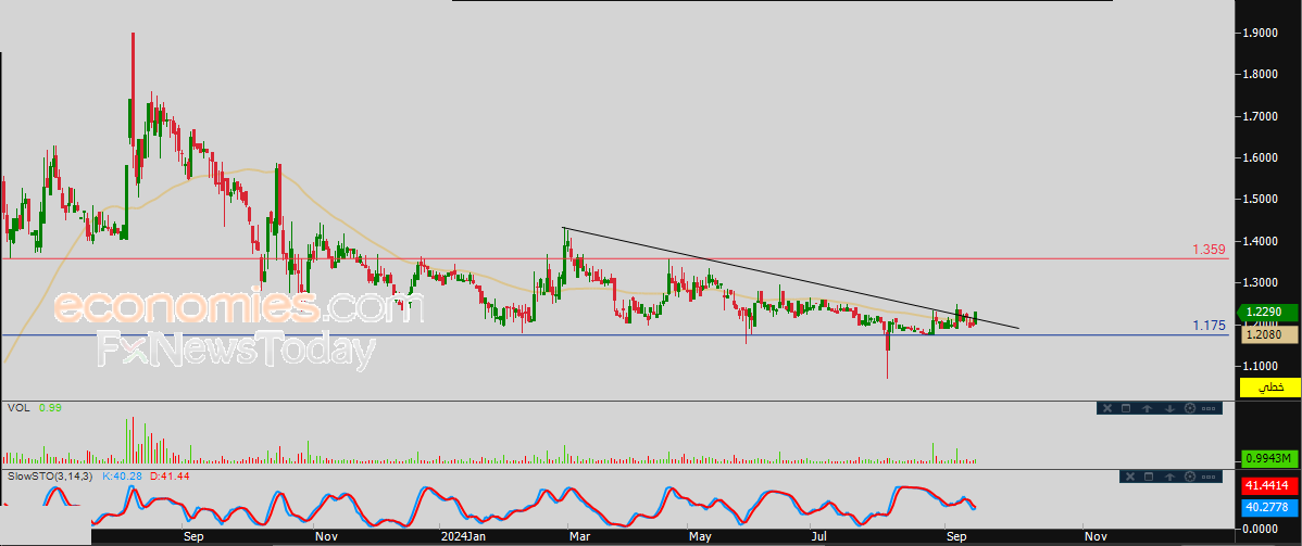 لذلك نحن نرجح ارتفاع السهم خلال تداولاته القادمة، بشرط ثبات مستوى الدعم 1.175، ليستهدف مستوى المقاومة 1.359.
