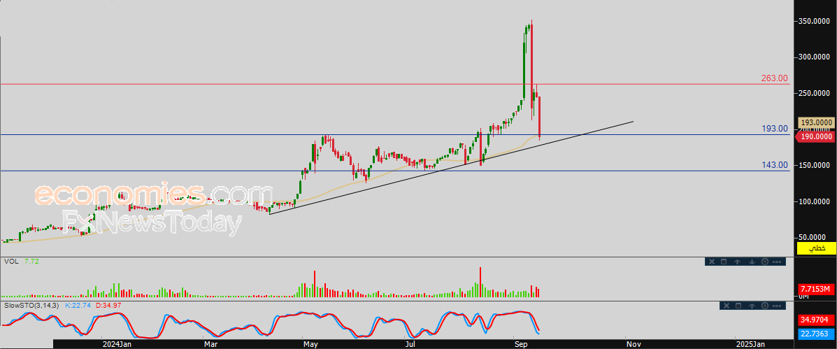 لذلك نحن نرجح عودة صعود سعر السهم خلال تداولاته القادمة، ولكن بشرط مهم وهو ثبات مستوى الدعم 193.00، ليستهدف أولى مستويات المقاومة عند 263.00.