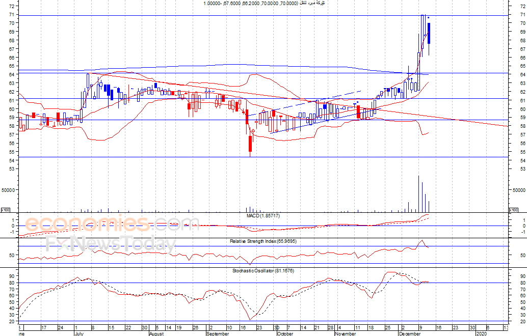 من المتوقع ان يكون النطاق السعري خلال جلسة اليوم بين مستوى الدعم هو 65 فلس وبين مستوى المقاومة هو 69 فلس