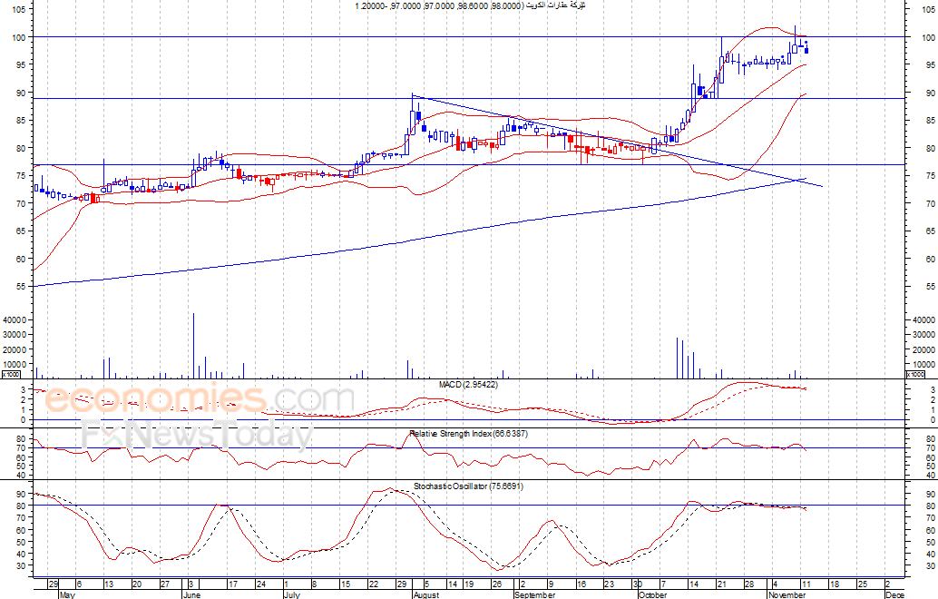 ومن المتوقع ان يكون النطاق السعري خلال جلسة اليوم بين مستوى الدعم هو 95.9 فلس وبين مستوى المقاومة هو 98.1 فلس