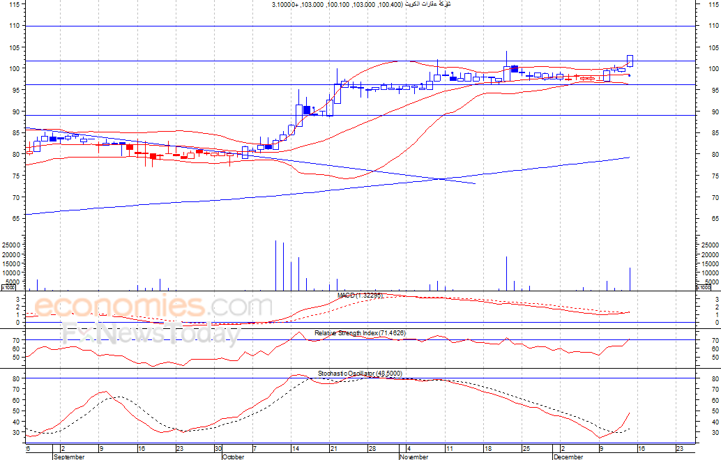 من المتوقع ان يكون النطاق السعري خلال جلسة اليوم بين مستوى الدعم وهو 101.1 وبين مستوى المقاومة هو 104.9 فلس