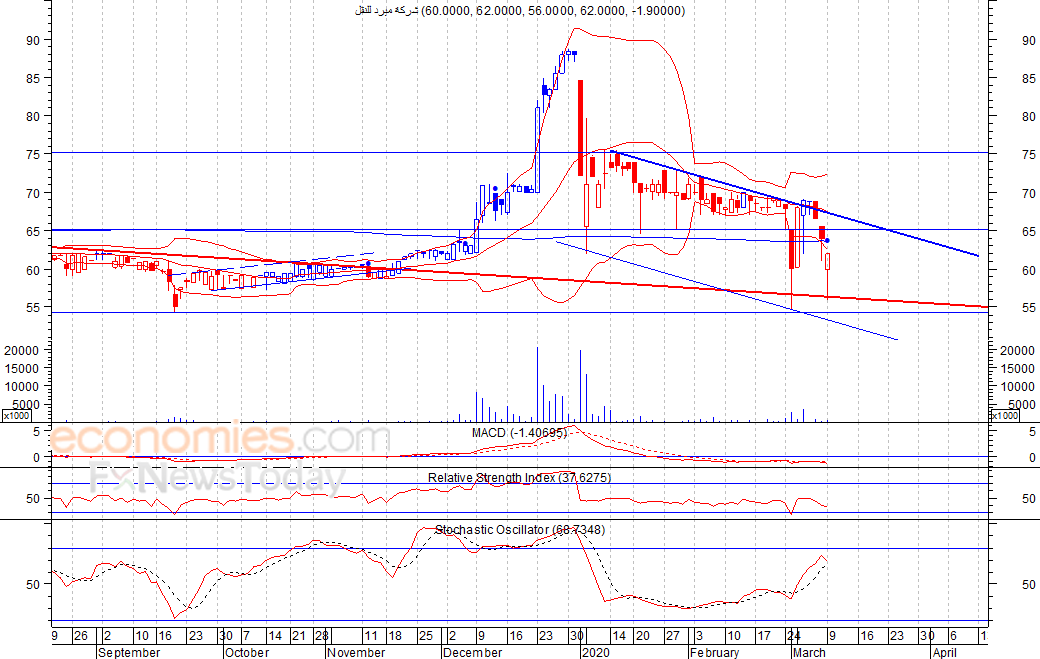 متوقع ان يكون النطاق السعري خلال اليوم الحالي بين مستوى الدعم هو 56.0 بينما مستوى المقاومة هو 63.0 فلس