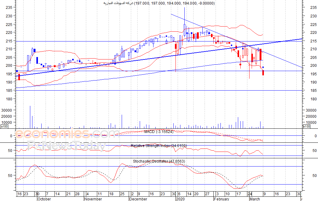 متوقع ان يكون النطاق السعري خلال اليوم الحالي بين مستوى الدعم هو 193.0 بينما مستوى المقاومة هو 196.0 فلس