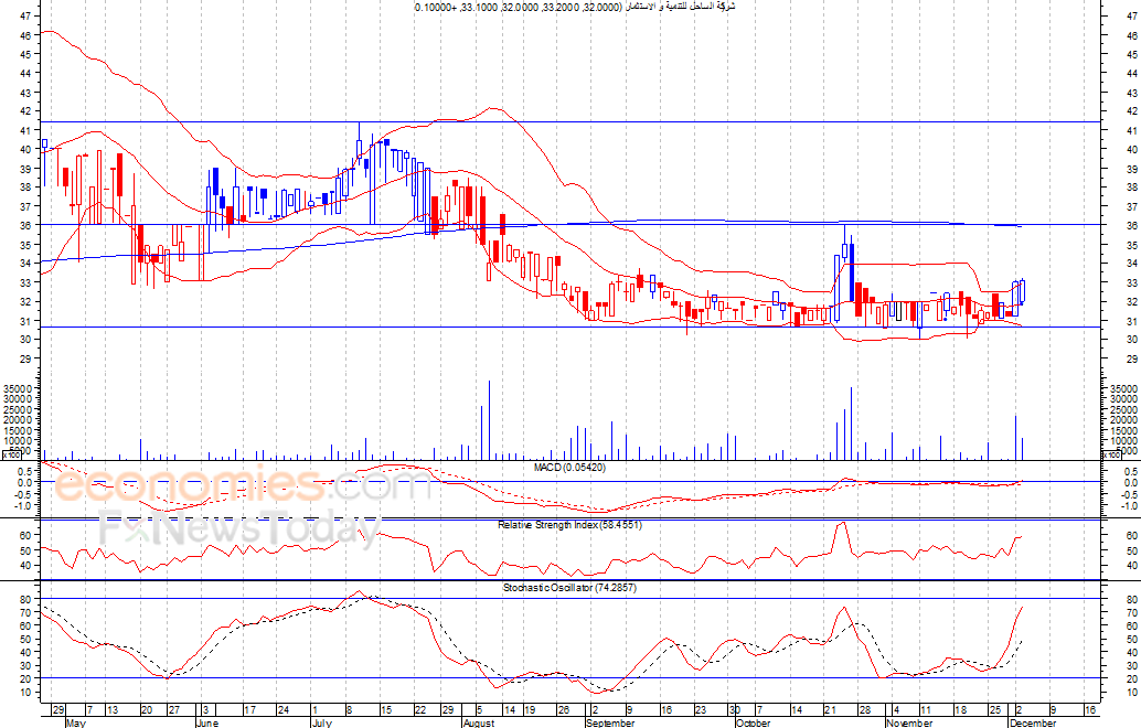 من المتوقع ان يكون النطاق السعري خلال جلسة اليوم بين مستوى الدعم وهو 32.3 وبين مستوى المقاومة هو 34.0 فلس