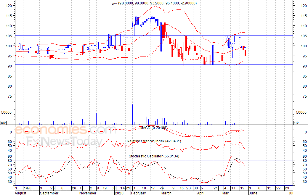 متوقع ان يكون النطاق السعري خلال اليوم الحالي بين مستوى الدعم هو 92.9 بينما مستوى المقاومة هو 97.7 فلس