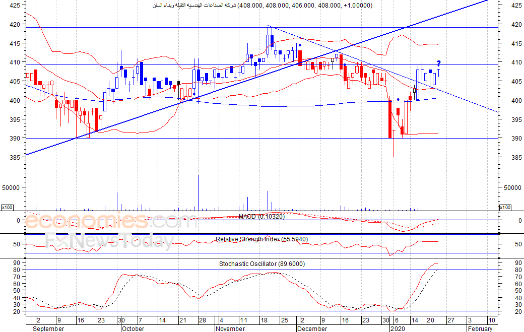 متوقع ان يكون النطاق السعري خلال اليوم الحالي بين مستوى الدعم هو 407 بينما مستوى المقاومة هو 410 فلس