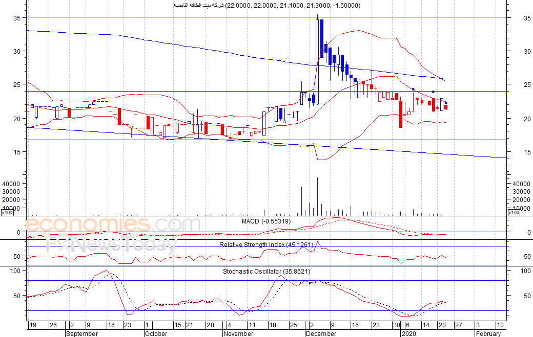 متوقع ان يكون النطاق السعري خلال اليوم الحالي بين مستوى الدعم هو 20.9 بينما مستوى المقاومة هو 21.8 فلس