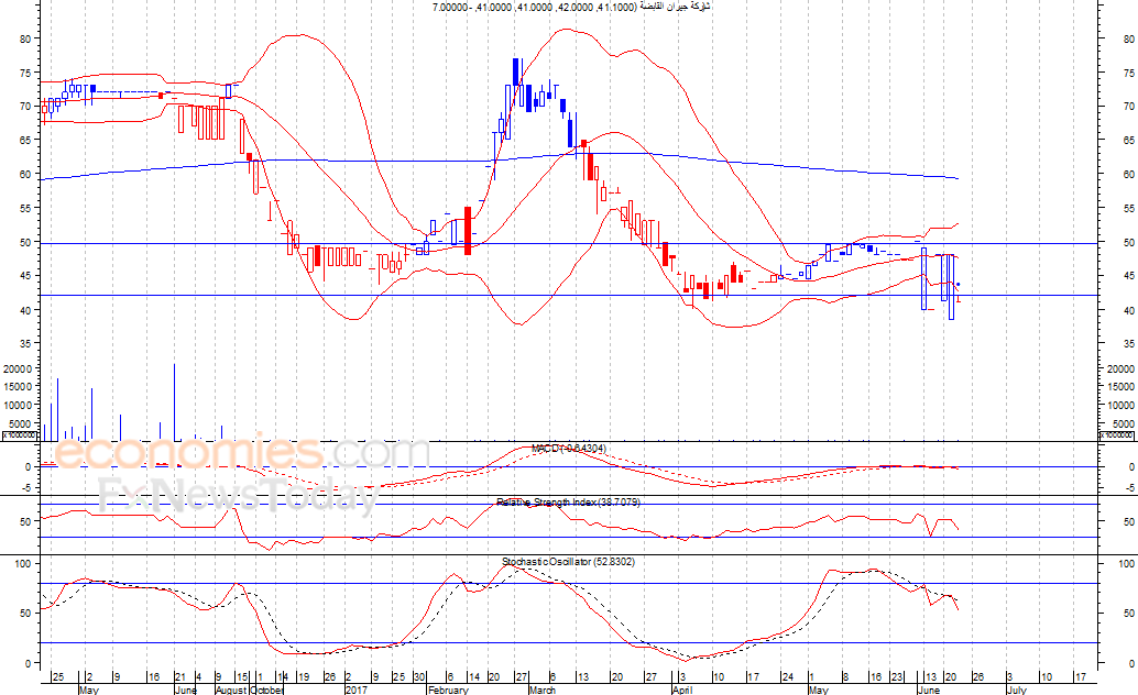 من المتوقع ان يكون النطاق السعري خلال جلسة اليوم بين مستوى الدعم هو 40.3 فلس وبين مستوى المقاومة هو 41.7 فلس