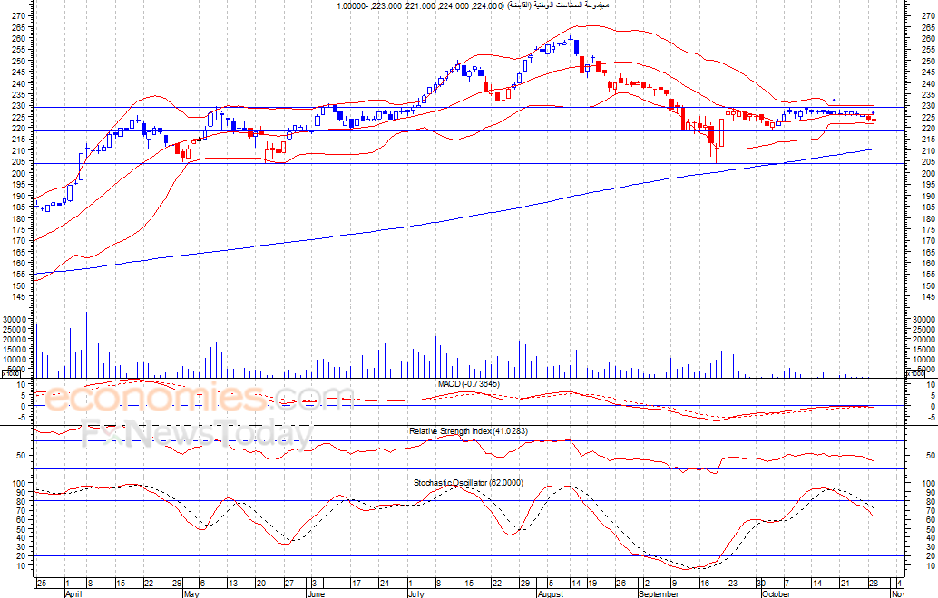 ومن المتوقع أن يكون النطاق السعري خلال جلسة اليوم بين مستوى الدعم هو 219 فلس وبين مستوى المقاومة هو 224 فلس