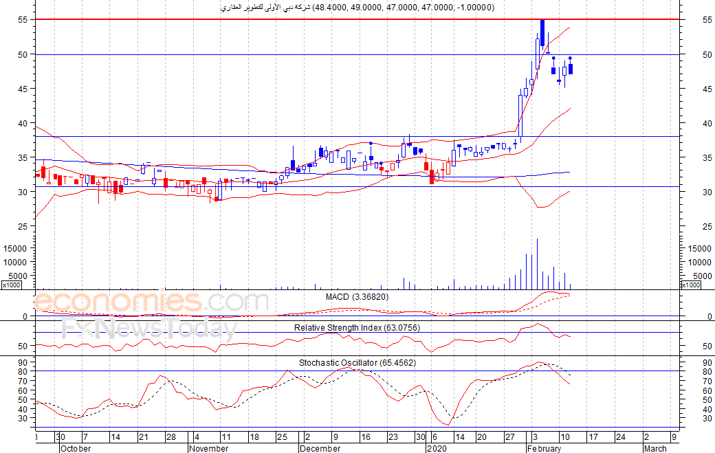 متوقع ان يكون النطاق السعري خلال اليوم الحالي بين مستوى الدعم هو 46.3 بينما مستوى المقاومة هو 48.3 فلس