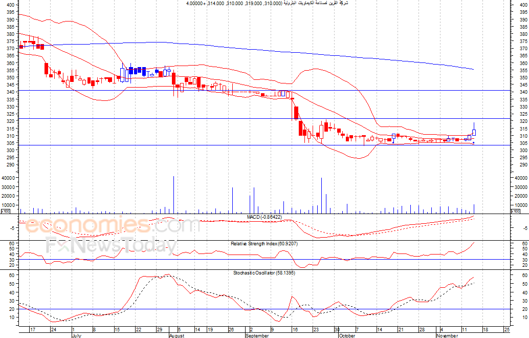 من المتوقع ان يكون النطاق السعري خلال جلسة اليوم بين مستوى الدعم وهو 310 وبين مستوى المقاومة هو 323 فلس
