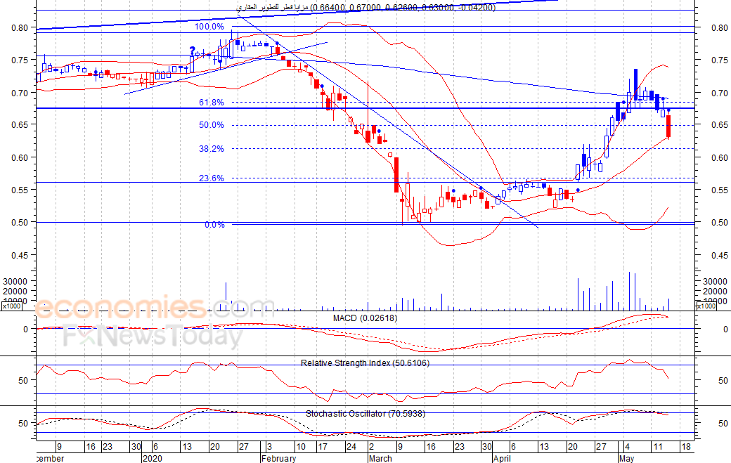من المتوقع ان يكون النطاق السعري خلال جلسة اليوم بين مستوى الدعم هو 0.60 ريال وبين مستوى المقاومة هو 0.66 ريال