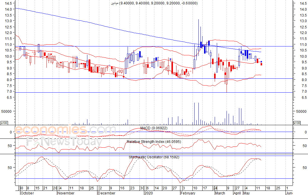 واصل السهم عمليات جني الأرباح كما اشرنا في تقاريرنا السابقة، حيث اغلق عند مستوى 9٫2 فلس، في ظل تدني كميات التداول، كما نلاحظ انطلاق إشارة بيع على مؤشر ماكد، لذلك نتوقع ان يشهد السهم المزيد من عمليات جني الأرباح للوصول لمستوى الدعم 8 فلس كمستوى اول، شرط بقاء السهم اسفل مستوى 10٫80 فلس.