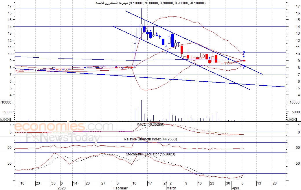 متوقع ان يكون النطاق السعري خلال اليوم الحالي بين مستوى الدعم هو 8.8 بينما مستوى المقاومة هو 9.2 فلس