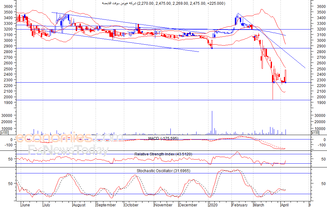 متوقع ان يكون النطاق السعري خلال اليوم الحالي بين مستوى الدعم هو 2,340 بينما مستوى المقاومة هو 2,550 فلس