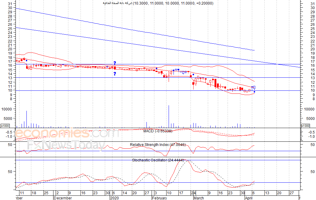 تراجع السهم ليغلق عند مستوى 8٫90 فلس في ظل سيطرة الحيرة على تداولات السهم في الأجل القصير، حيث يتداول السهم حاليا بين مستوى 10٫20 ومستوى 8٫30 فلس، ولا تعكس المؤشرات الفنية اي إشارات ذات اهمية، لذلك نتوقع ان يتحدد اتجاه السهم القادم باختراقه احد المستويين المذكورين.
