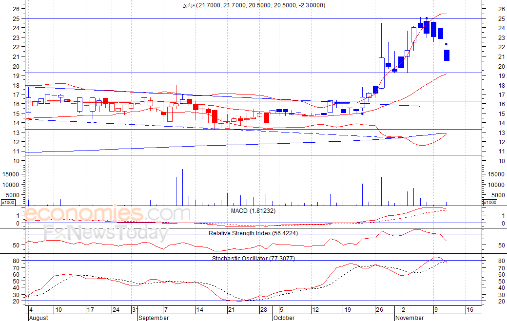 متوقع ان يكون النطاق السعري خلال اليوم الحالي بين مستوى الدعم هو 20.1 بينما مستوى المقاومة هو 21.3 فلس