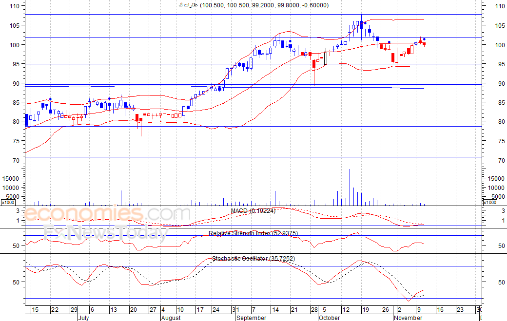 متوقع ان يكون النطاق السعري خلال اليوم الحالي بين مستوى الدعم هو 99 بينما مستوى المقاومة هو 100 فلس