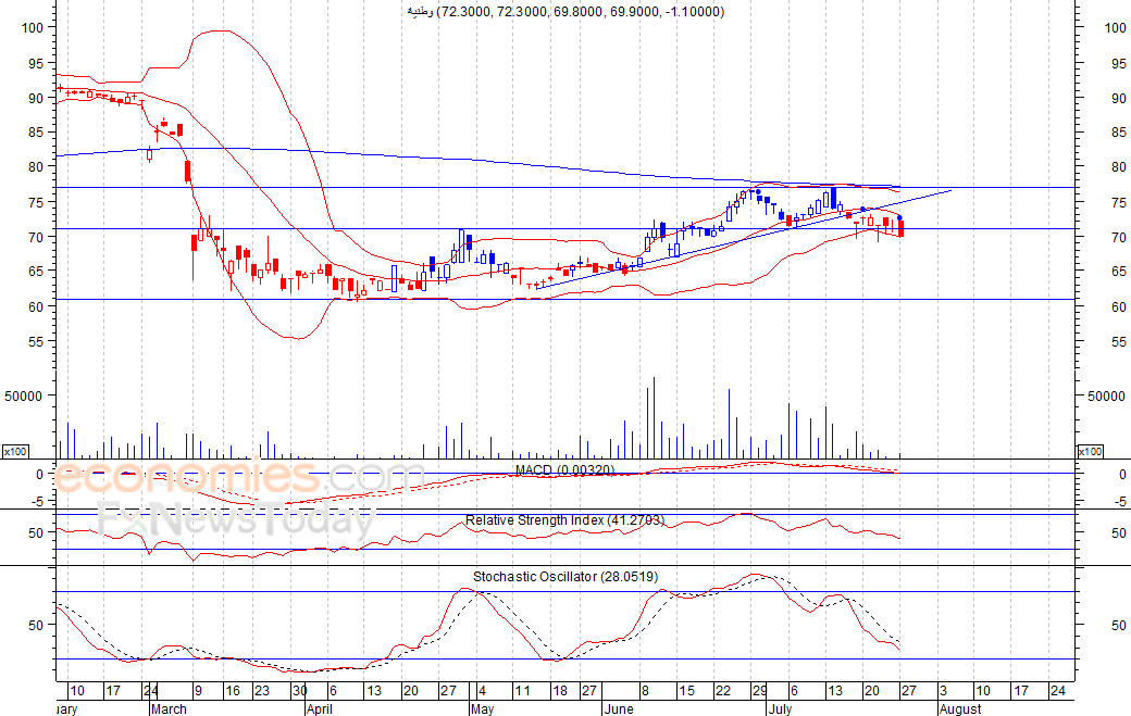 متوقع ان يكون النطاق السعري خلال اليوم الحالي بين مستوى الدعم هو 69.0 بينما مستوى المقاومة هو 71.5 فلس