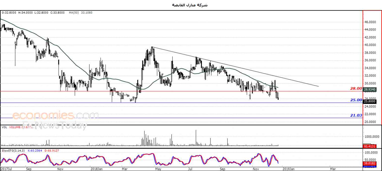 ولذلك نحن نتوقع المزيد من الانخفاض للسهم خلال تداولاته القادمة ، خاصة في حالة كسره للدعم 25.00 ، ليستهدف بعدها مستوى الدعم 21.03 .