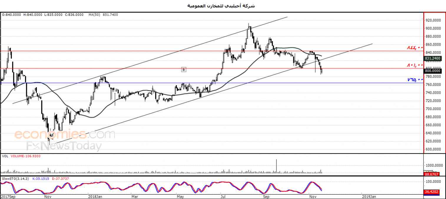 ولذلك نحن نرجح عودة انخفاض السهم خلال تداولاته القادمة ، ليستهدف مستوى الدعم 765.00 ، طيلة استقراره أدنى مستوى 801.00 .