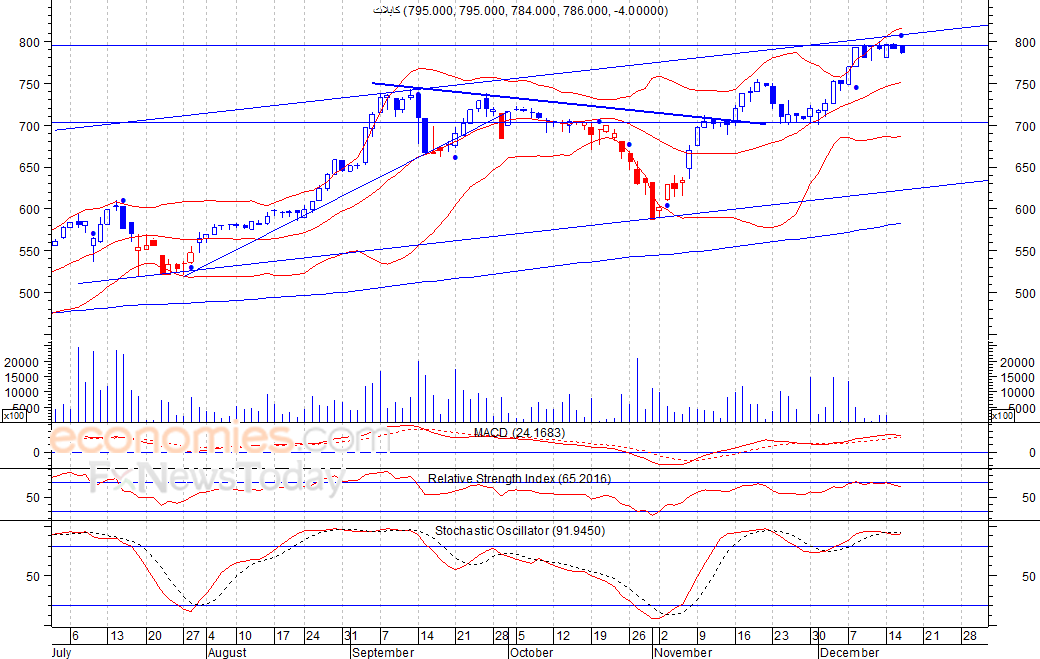 متوقع ان يكون النطاق السعري خلال اليوم الحالي بين مستوى الدعم هو 781.7 بينما مستوى المقاومة هو 792.7 فلس