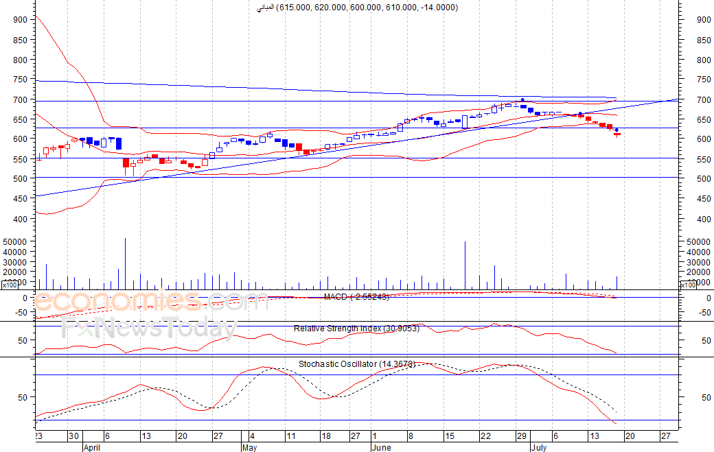 متوقع ان يكون النطاق السعري خلال اليوم الحالي بين مستوى الدعم هو 600.0 بينما مستوى المقاومة هو 620.0 فلس