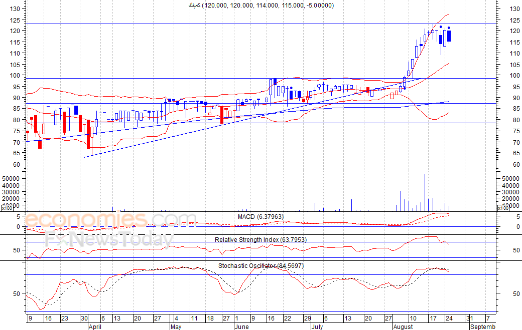 متوقع ان يكون النطاق السعري خلال اليوم الحالي بين مستوى الدعم هو 111 بينما مستوى المقاومة هو 117 فلس