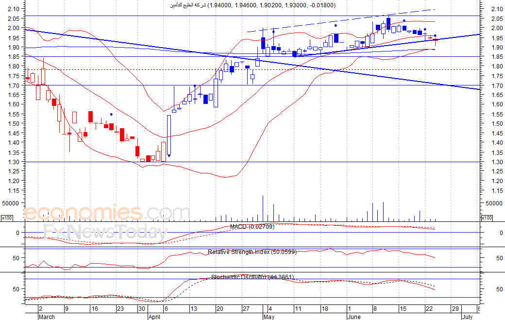 من المتوقع ان يكون النطاق السعري خلال جلسة اليوم بين مستوى الدعم وهو 1.90 وبين مستوى المقاومة هو 1.96 ريال