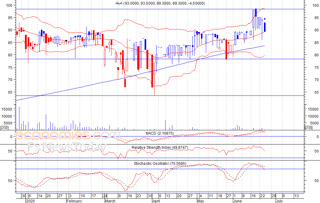 متوقع ان يكون النطاق السعري خلال اليوم الحالي بين مستوى الدعم هو 88.1 بينما مستوى المقاومة هو 90.8 فلس
