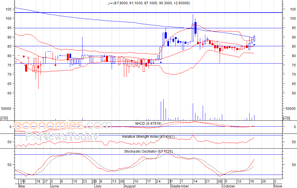 متوقع ان يكون النطاق السعري خلال اليوم الحالي بين مستوى الدعم هو 89 بينما مستوى المقاومة هو 92.9 فلس
