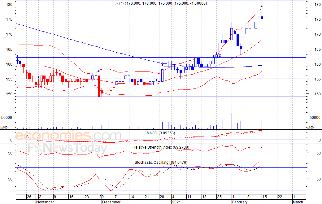 متوقع ان يكون النطاق السعري خلال اليوم الحالي بين مستوى الدعم هو 174.0 بينما مستوى المقاومة هو 177.0 فلس