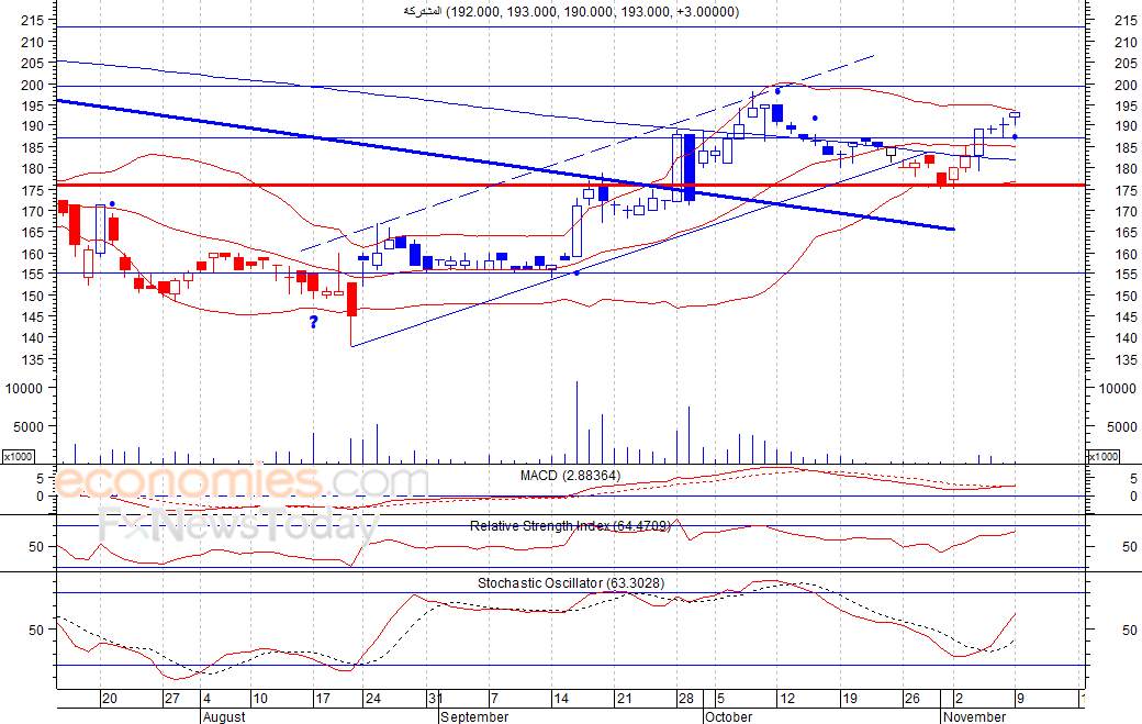 متوقع ان يكون النطاق السعري خلال اليوم الحالي بين مستوى الدعم هو 192.0 بينما مستوى المقاومة هو 195.0 فلس