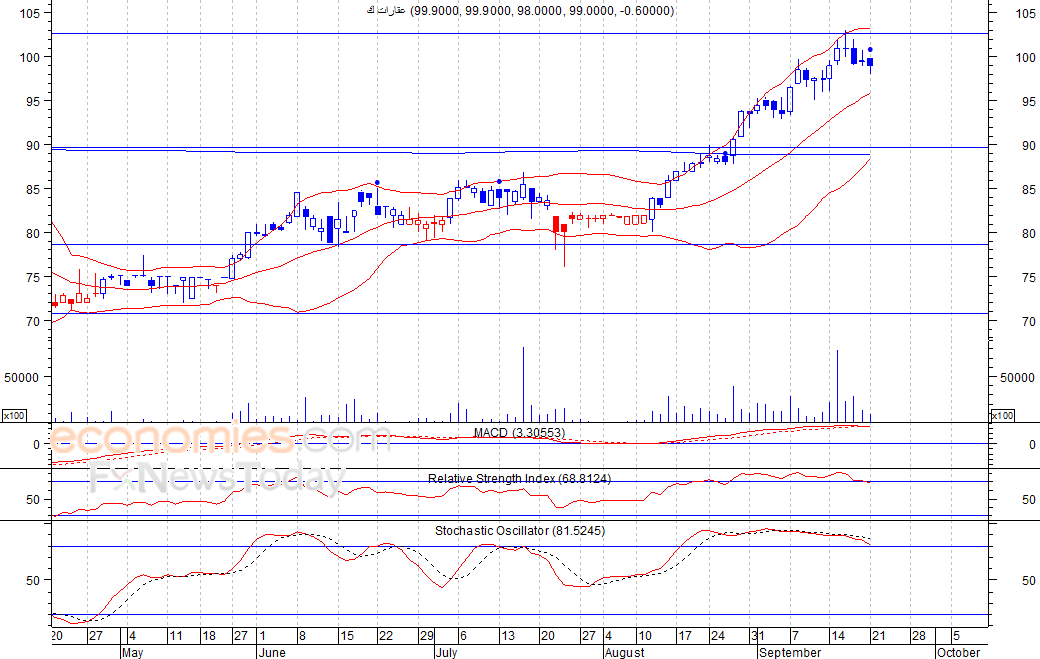من المتوقع ان يكون النطاق السعري خلال جلسة اليوم بين مستوى الدعم هو 1.65 ريال وبين مستوى المقاومة هو 1.86 ريال
