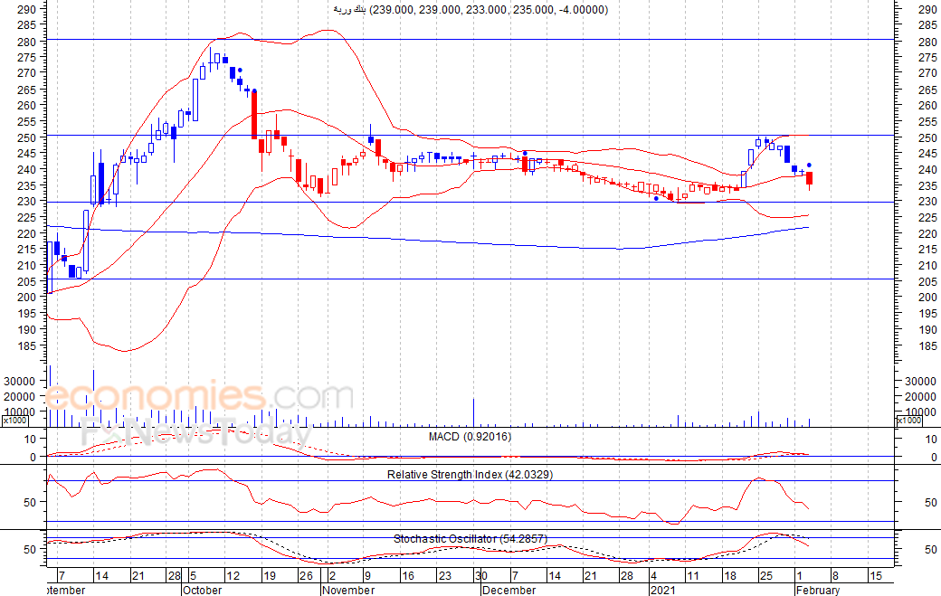 متوقع ان يكون النطاق السعري خلال اليوم الحالي بين مستوى الدعم هو 230 بينما مستوى المقاومة هو 237 فلس