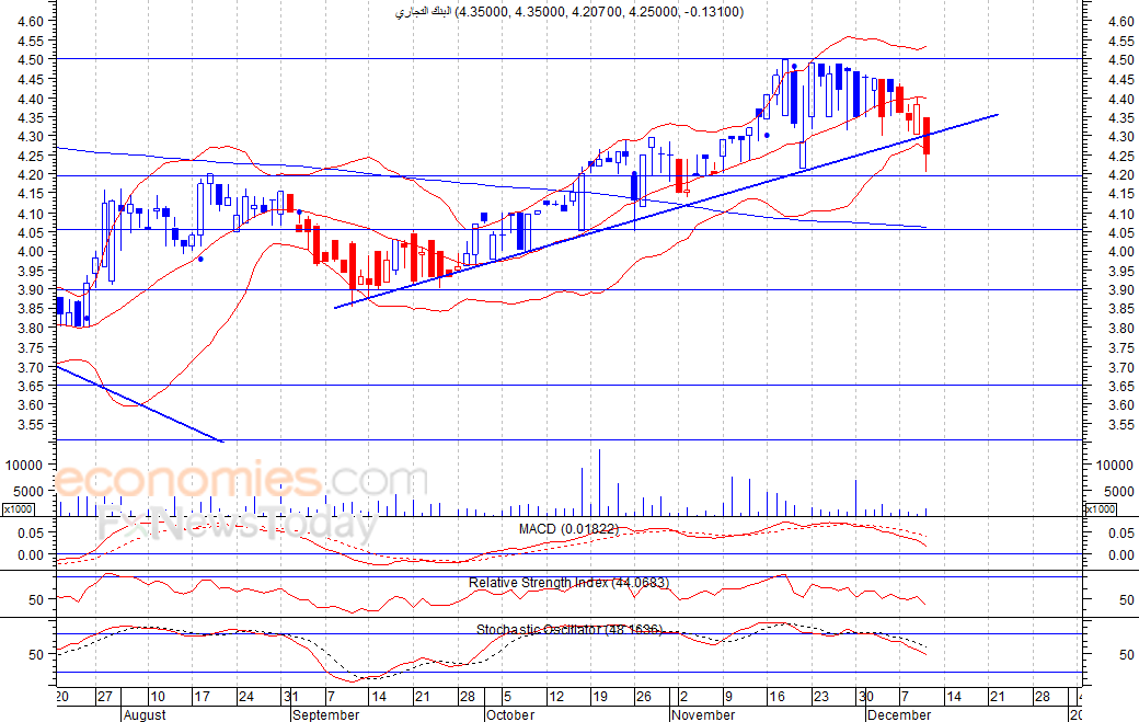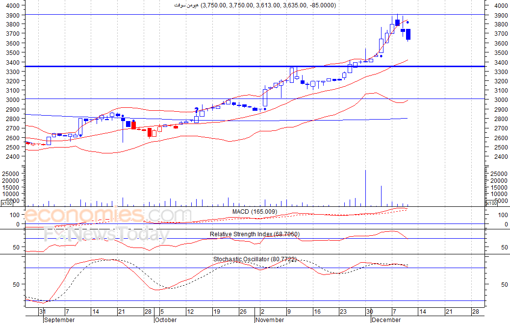 متوقع ان يكون النطاق السعري خلال اليوم الحالي بين مستوى الدعم هو 3,570 بينما مستوى المقاومة هو 3,700 فلس