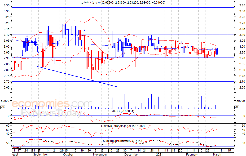 من المتوقع ان يكون النطاق السعري خلال جلسة اليوم بين مستوى الدعم وهو 2.95 وبين مستوى المقاومة هو 3.02 ريال