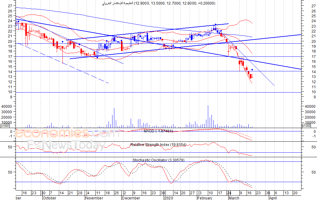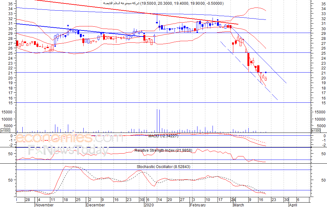 متوقع ان يكون النطاق السعري خلال اليوم الحالي بين مستوى الدعم هو 19.3 بينما مستوى المقاومة هو 20 فلس
