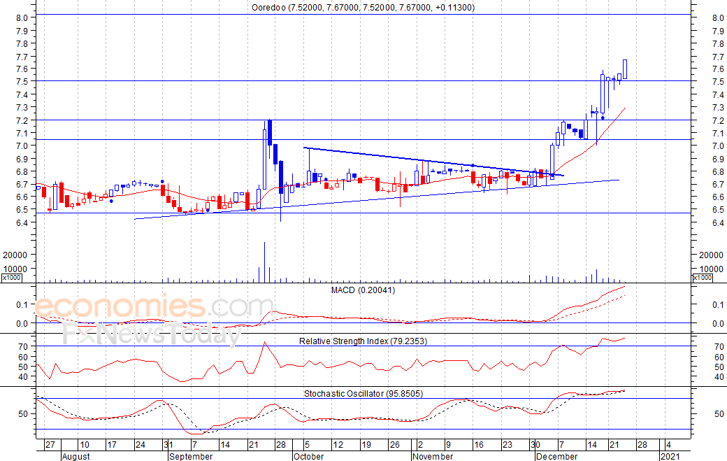 سيطرت القوى الشرائية على تداولات السهم خلال جلسة الخميس الماضي، حيث اغلق عند مستوى 7٫67 ريال، وهو أعلى مستوى يصل اليه السهم خلال الجلسة وايضا منذ شهر سبتمبر من العام الماضي، ويتجه السهم حاليا لمستوى المقاومة التالي عند 8 ريال، شرط بقاء السهم أعلى مستوى 7٫50 ريال.