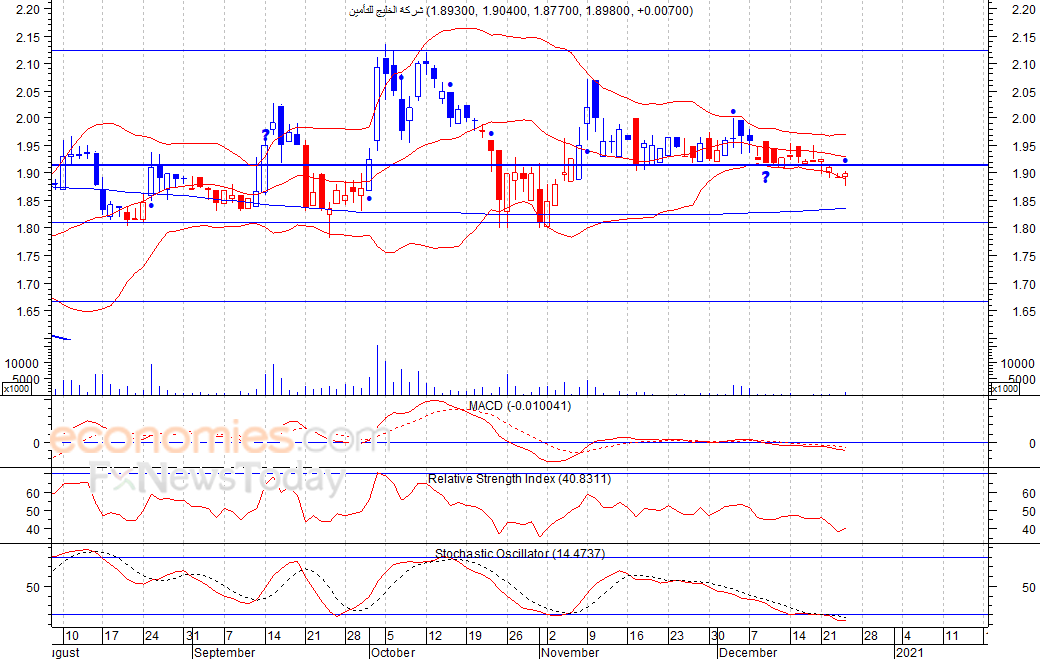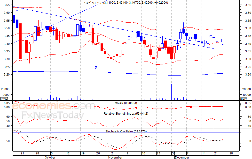 متوقع ان يكون النطاق السعري خلال اليوم الحالي بين مستوى الدعم هو 320 بينما مستوى المقاومة هو 370 فلس