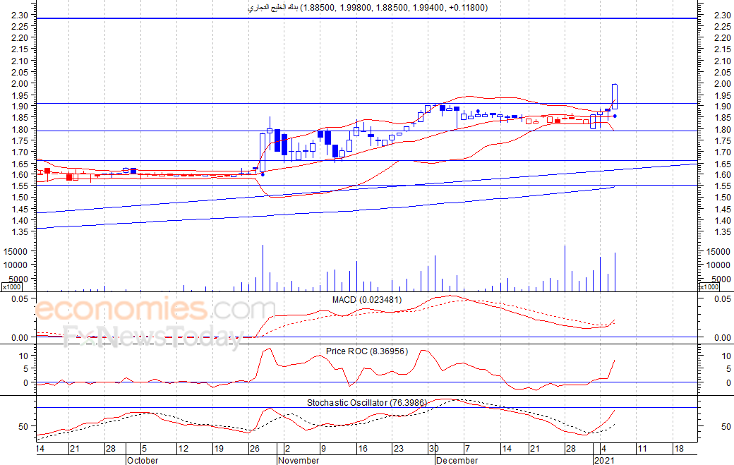 من المتوقع ان يكون النطاق السعري خلال جلسة اليوم بين مستوى الدعم وهو 1.95 وبين مستوى المقاومة هو 2.07 ريال