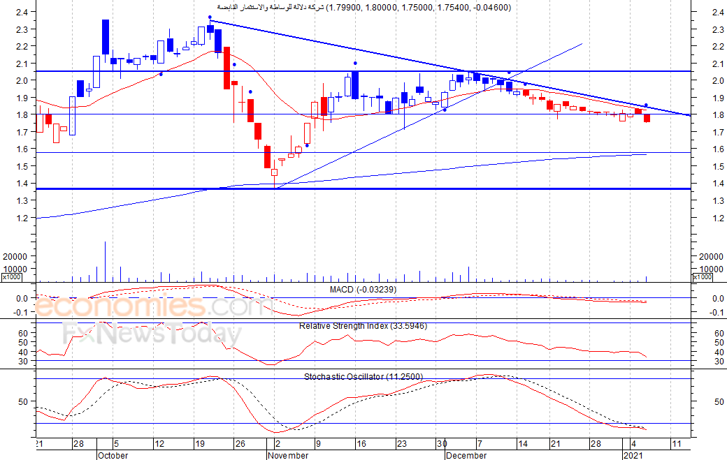 من المتوقع ان يكون النطاق السعري خلال جلسة اليوم بين مستوى الدعم هو 1.72 ريال وبين مستوى المقاومة هو 1.79 ريال